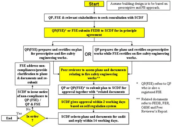 The flowchart above illustrates the process for performance-based plan submission- by Singapore Civil Defence Force